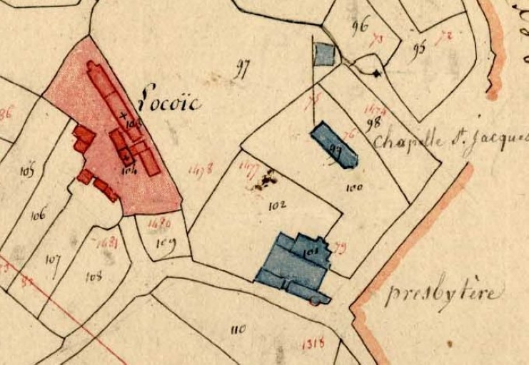 Extrait du cadastre de 1823, section E1 (A.D. Finistère, 3 P 101)Immatriculation