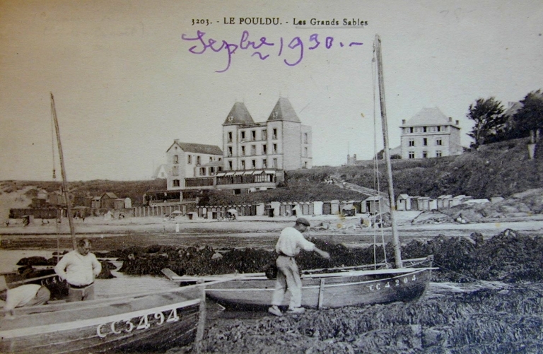 La plages des Grands Sables et l'Hôtel des Bains. Carte postale, vers 1900 (coll. part.)Immatriculation