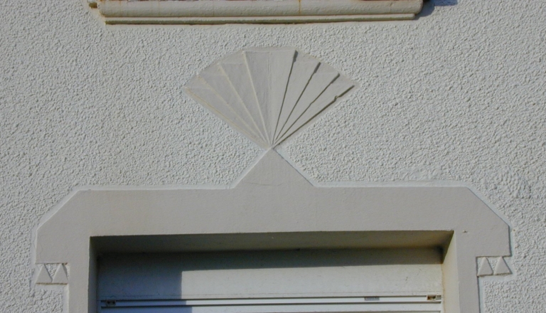 Les Grands Sables. 14, rue du Philosophe Alain. Maison dite Ty Jeannic, décor en ciment mouléImmatriculation