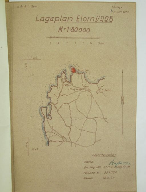 Plan de situation de l'ensemble fortifié de la pointe de Primel, 1944Immatriculation