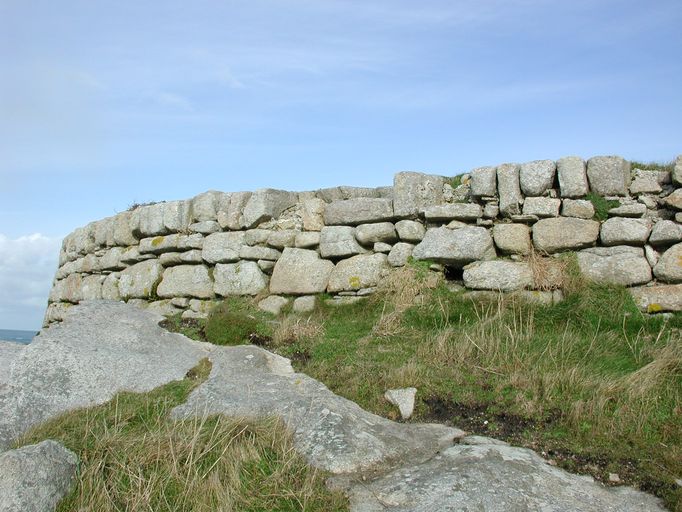 Batterie de côte (en arc de cercle) et four à boulets (détruit) de l'île de Sieck (Santec),