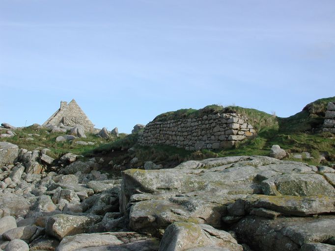 Batterie de côte (en arc de cercle) et four à boulets (détruit) de l'île de Sieck (Santec),
