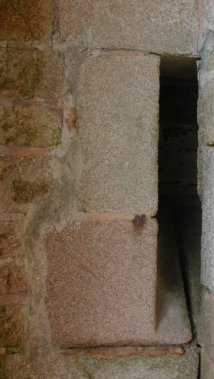 Vue du créneau de fusillade gauche de la porte d'entrée (état en 2000)Immatriculation