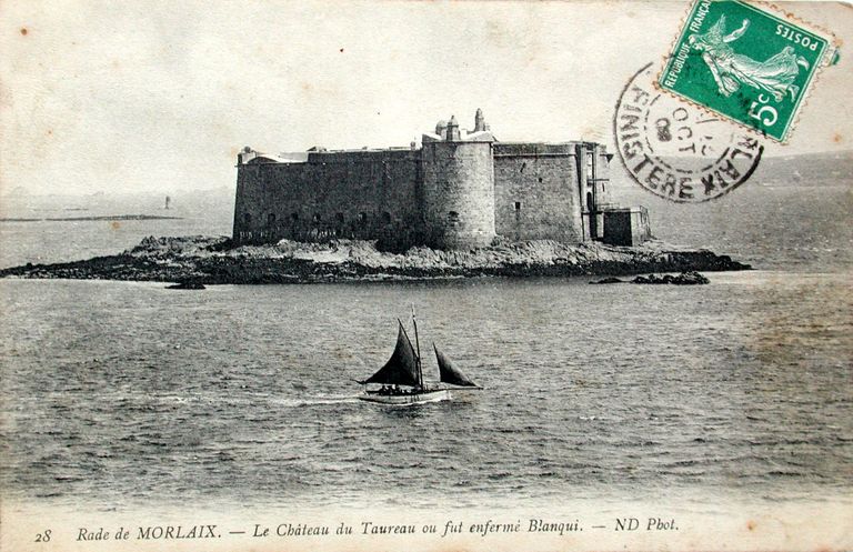 Vue du château du Taureau à la fin du 19e siècle, l'échauguette de la tour Française est encore en place, carte postale ancienne, Bibliothèque Municipale de MorlaixImmatriculation
