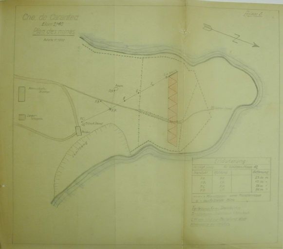 Plan des champs de mines et des fortifications de la pointe du Cosmeur (pointe nord de la pointe de Penn-al-Lann)Immatriculation
