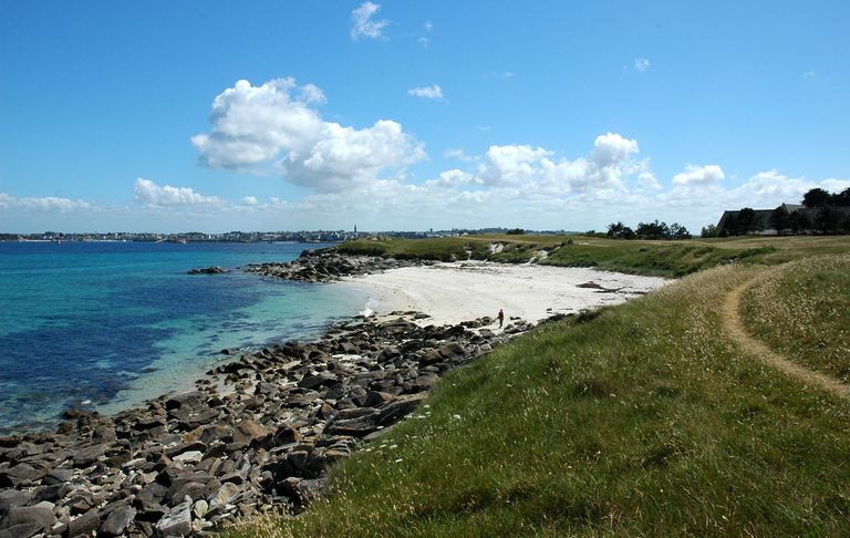 Vue de la grève située au Nord-est de Penn ar C'hleguer (état en 2002). Elle était défendue par la batterie de côte de BilvidicImmatriculation