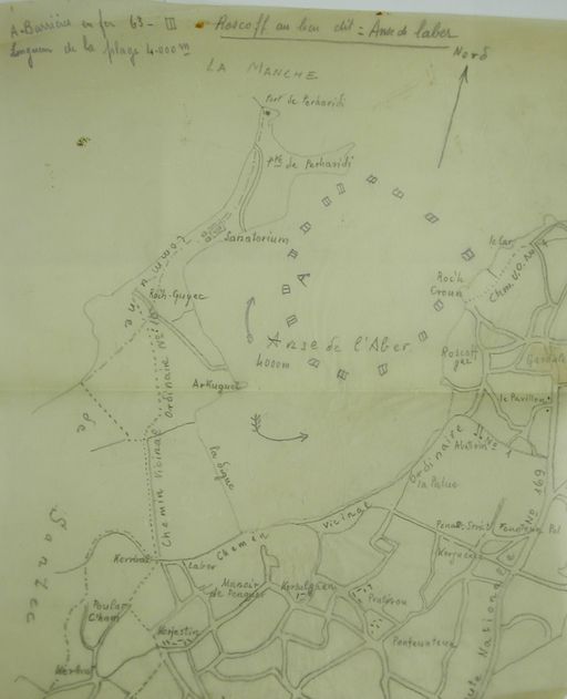 Roscoff : calque de l'anse de l'Aber qui était protégée par des herses Maginot, service français de déminage, sources Fort MontbareyImmatriculation