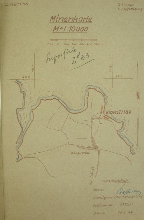 Plan de situation des champs de mines du Tévenn entre les ensembles fortifiés n° 111 et 112, commune de Sibiril, 1944Immatriculation