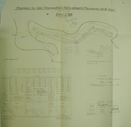 Plan des champs de mines de d'Ar Roc'h, commune de Sibiril, 1944Immatriculation