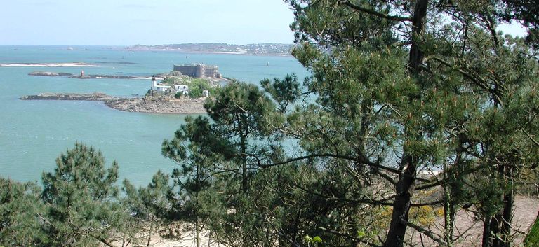 Vue du château du Taureau et de l'île Louët depuis le Tobrouk de la pointe de Penn-al-LannImmatriculation