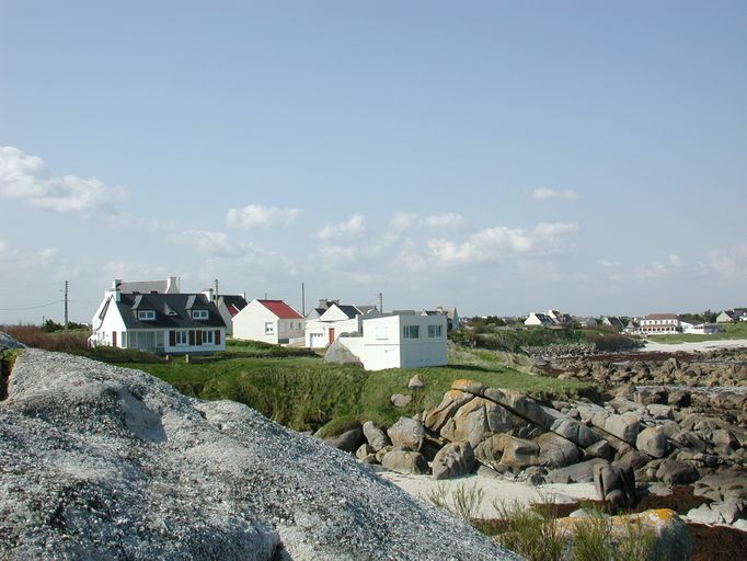Cléder : vue de la côte à l'ouest du corps de garde de Lavillo, les maisons et résidences secondaires ont remplacé les champs de minesImmatriculation