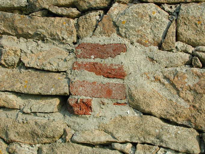 Vue de la petite baie servant au guet de la guérite de l'Ile de Sieck, bouchée par des briques assemblées au ciment très probablement par l'occupant allemandImmatriculation