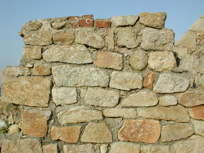 Vue de l'appareillage des pierres de la cuisine annexe du corps de garde de l'île de Sieck (granite, moellons, briques, ciment)Immatriculation