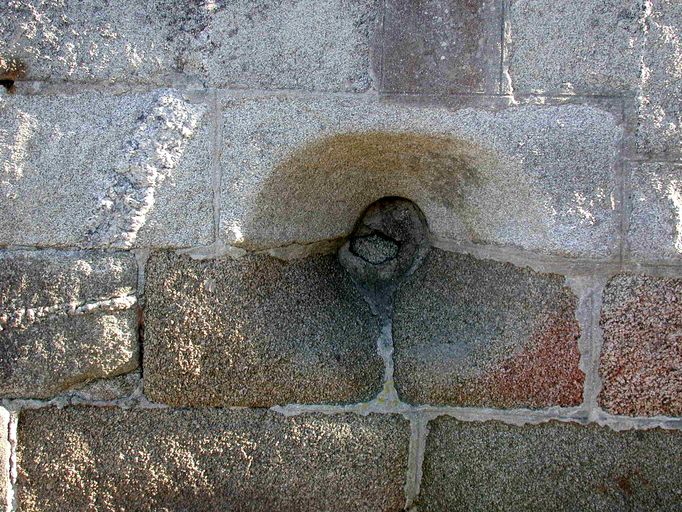 Vue de détail de l'élévation nord : embrasure de plan circulaire (état en 2002)Immatriculation
