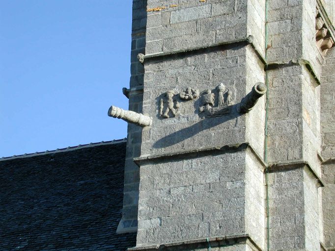 Roscoff : détail des sculptures : caravelle et canons de l'église Notre-Dame-de-Kroaz-Braz édifiée en grande partie grâce aux armateurs roscovitesImmatriculation