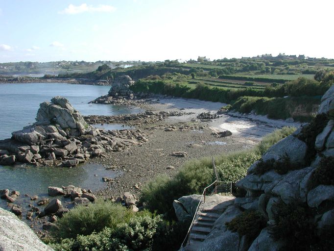 Vue de la plage de Traon Erc'h depuis le poste d'observation et de tir situé au sommet du rocher (état en 2002)Immatriculation