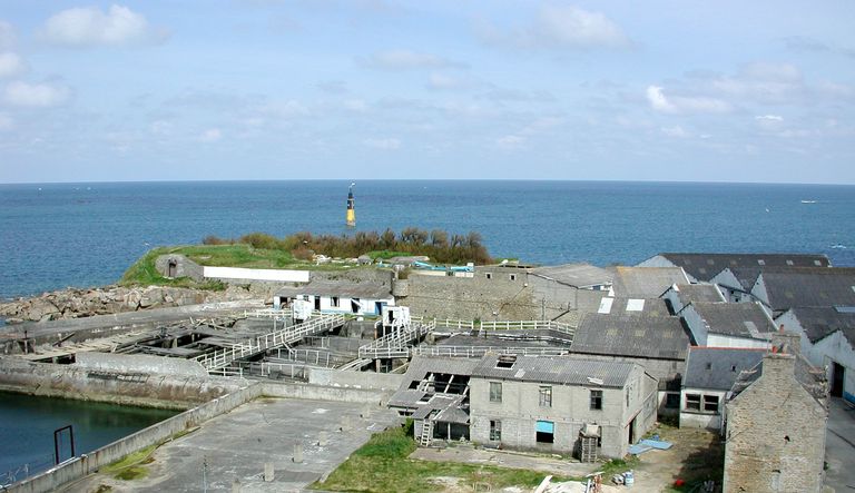 Roscoff : vue générale du fort et d'une partie de l'ensemble fortifié de Bloscon depuis la chapelle Sainte-BarbeImmatriculation