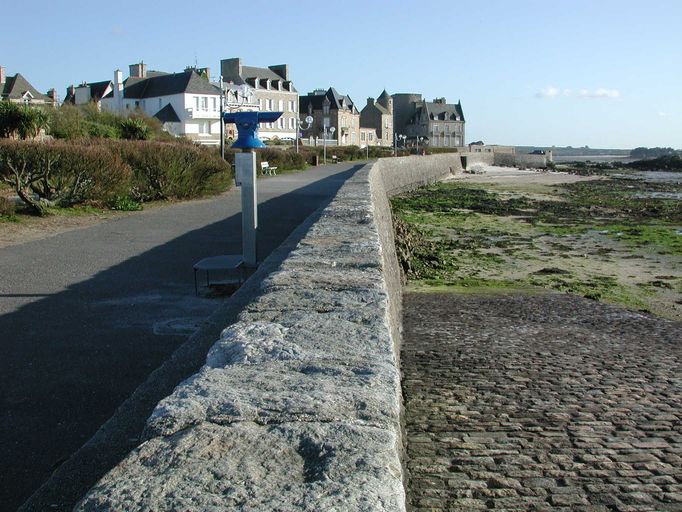 Roscoff : vue générale de Roc'higou. Durant la Seconde guerre Mondiale, les digues étaient défendues par un vaste réseau de barbelésImmatriculation