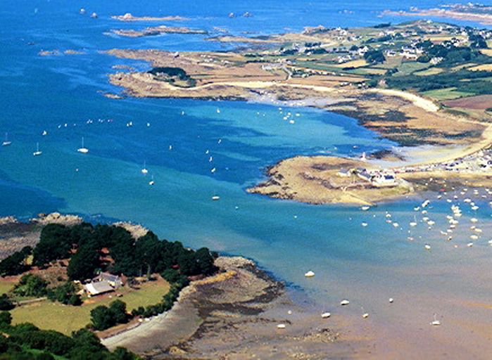 Plouézoch : vue aérienne de l'ensemble fortifié de Perrohen avant la tempête du 26 décembre 1999 (en bas à gauche) Photo André Scotet, Studio André, MorlaixImmatriculation