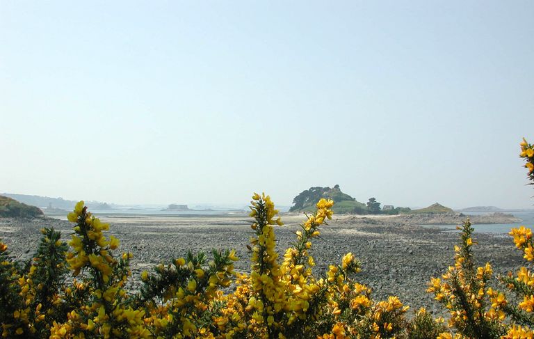 Vue de l'île Stérec et du château du Taureau depuis l'ensemble fortifié de PerrohenImmatriculation