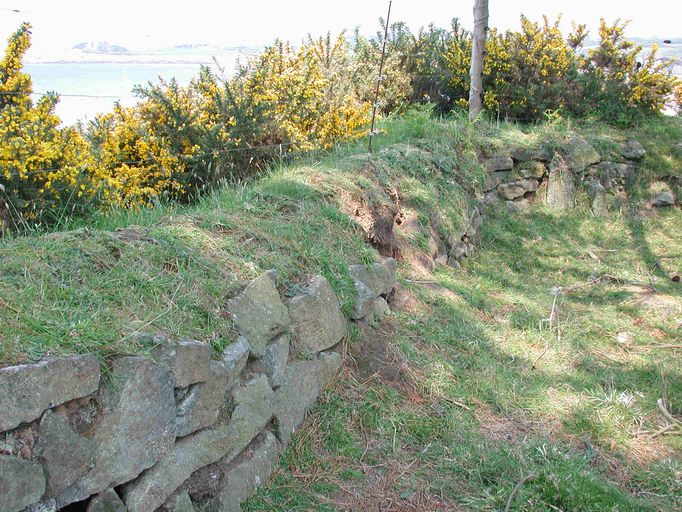 Vue du parapet de l'ensemble fortifié de Perrohen, en arrière plan, la pointe de Saint-Samson (batterie)Immatriculation