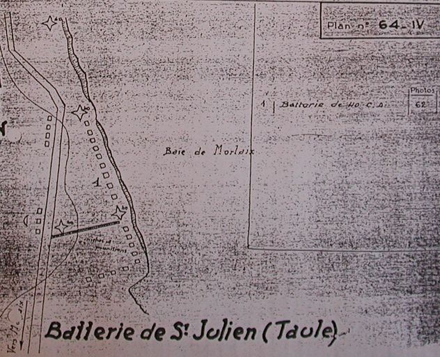 Plan de la batterie de Saint-Julien, rapport Pinczon du Sel. Livre IV, vers 1947, Service Historique de la Marine, BrestImmatriculation