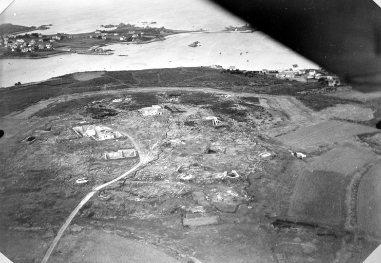 Vue aérienne des réseaux de tranchées (en rouge) de la station de repérage radar de Kerhouin, Service Historique de la Marine, BrestImmatriculation