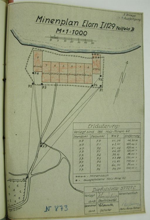 Plan du champ de mines de la plage de Port-Blanc, 1944, service allemand de minageImmatriculation