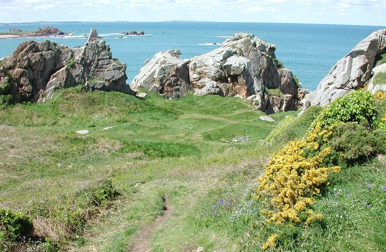 La côte de Plougasnou : vue de la pointe de Primel, la Salle Verte emplacement de ruines médiévalesImmatriculation