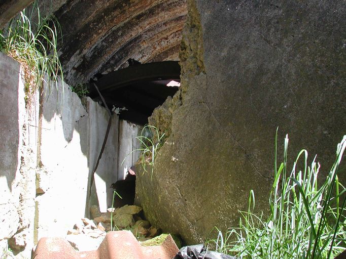 Vue des vestiges de l'abri type tôle métro de Beg an Fry : l'intérieur de l'abri avec sa tôle métro caractéristiqueImmatriculation