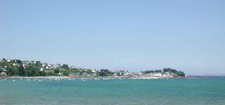 Locquirec : vue de la pointe du Château et de Locquirec depuis la Plage du Fond de la Baie (au premier plan)Immatriculation