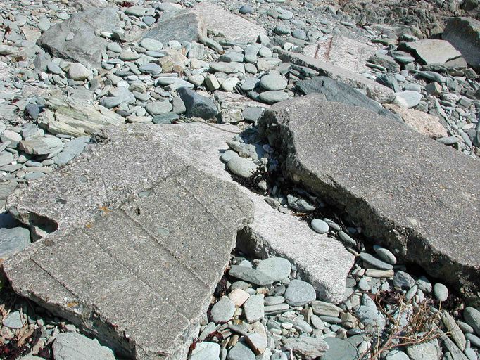 Vue des vestiges d'un ou plusieurs blockhaus sur la plage ouest de la pointe SéharImmatriculation