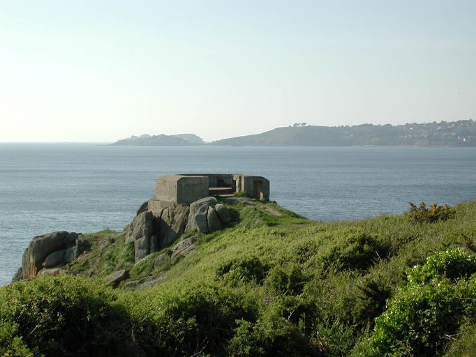 Lannion : vue de l'encuvement pour pièce antiaérienne de 20 mm de la pointe Servel, en arrière plan : la pointe de BihitImmatriculation