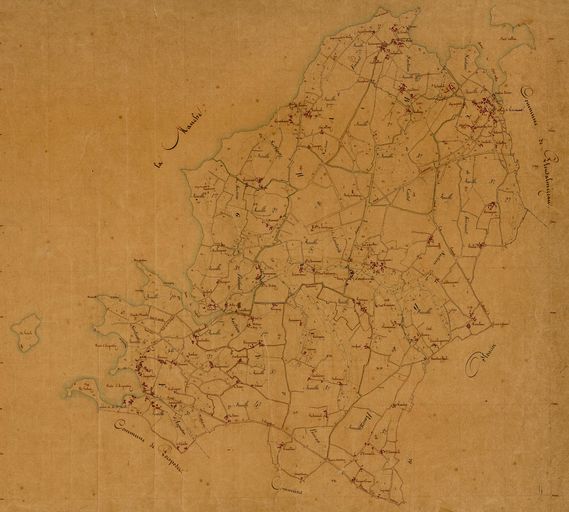 Extrait du tableau d'assemblage du cadastre ancien de la commune de Landunvez, 1844, Archives Départementales du FinistèreImmatriculation