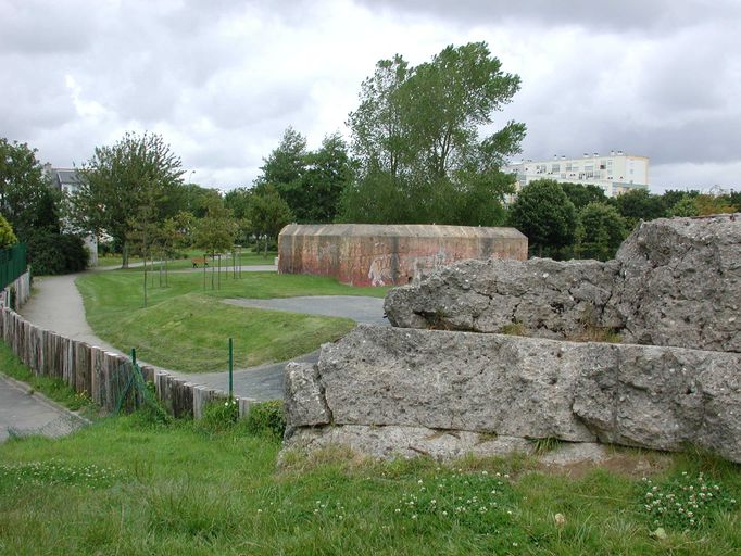Vue des vestiges de la première casemate de type H 669 de la batterie lourde de Saint-Pierre-de-Quilbignon, en arrière plan, la troisième casemateImmatriculation