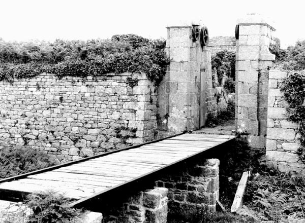 Landéda : fort Cézon, vue de l'entrée monumentale et du pont dormant (photographie Association Cézon, vers 1995-1998)Immatriculation