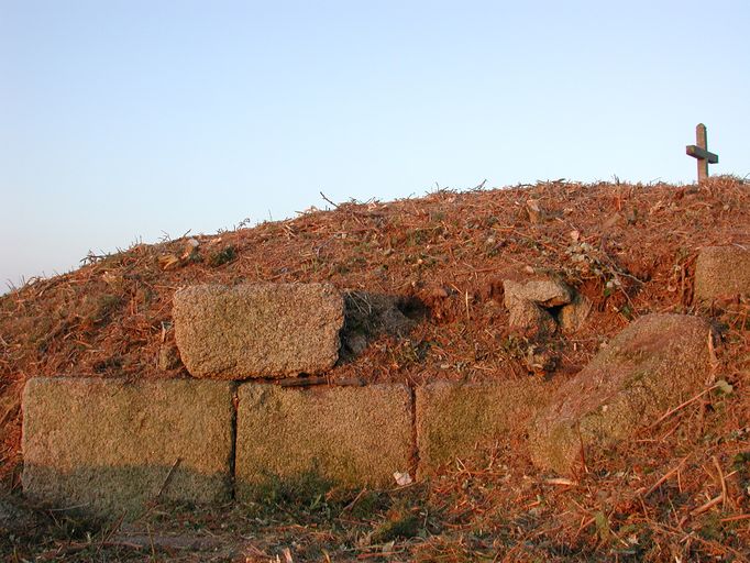 Vue du flanc du parapet en pierre de taille de granite (septembre 2002, après le débroussaillage de la batterie)Immatriculation