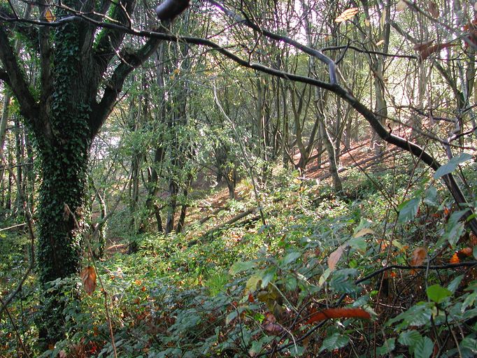 Tranchées (réseau de), dans le sous-bois, en contrebas du château de Roz ar Scour (Taulé),