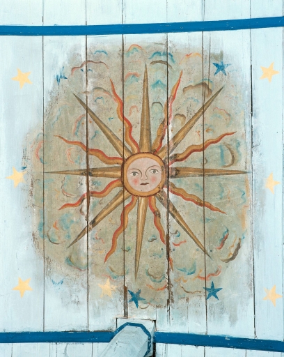 Décor de charpente : 6 entraits, 10 sablières, peinture monumentale,