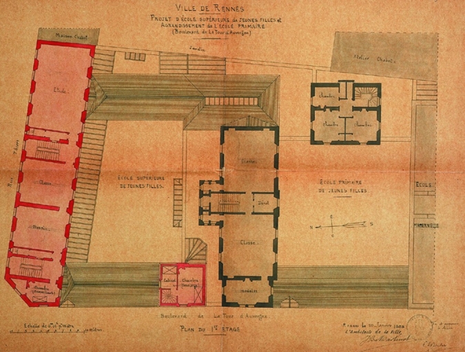 Plan du premier étage, dessin, par Jean-Baptiste Martenot, 1886 (A. C. Rennes)Immatriculation