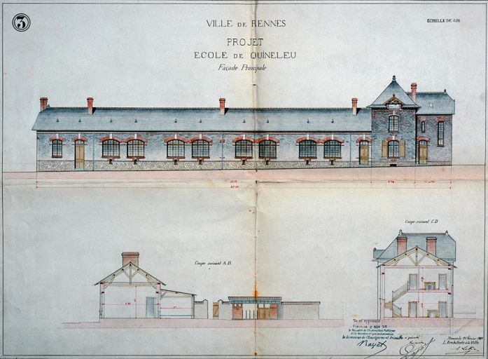 Façade principale et coupe, 1898 (A. C. Rennes ; 2 Fi 1096)Immatriculation