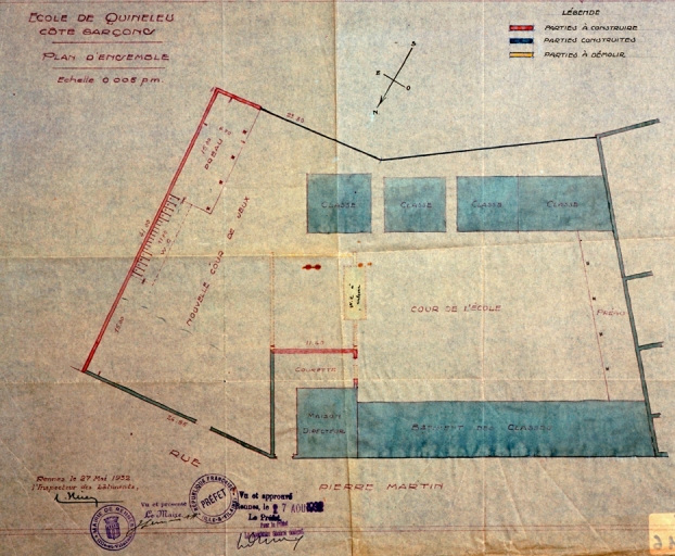 Ecole de garçons. Plan d'ensemble, 1932 (A. C. Rennes ; 2 Fi 1116)Immatriculation