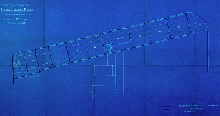 Pension Brecha, dite pensionnat de la Barre-Saint-Just, collège Saint-Vincent-de-Paul, école primaire supérieure et professionnelle de jeunes filles, actuellement lycée Jean Macé, 12 rue Jean-Macé (Rennes),