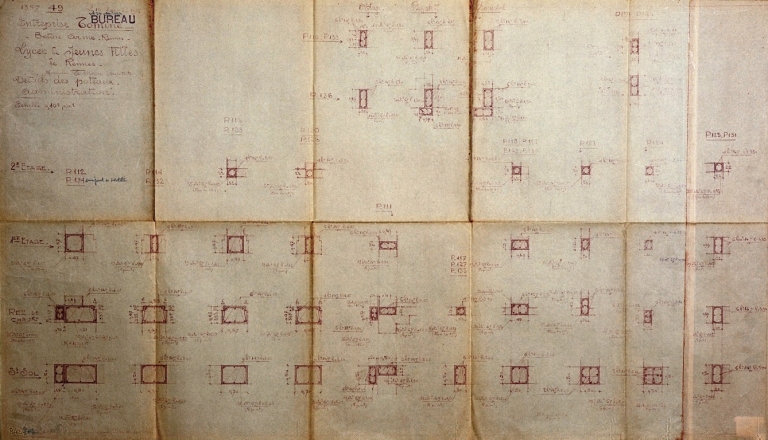 Plan détail des poteaux (A. C. Rennes, 2 Fi 3517)Immatriculation