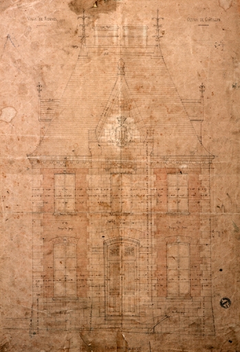 Elévation sur rue, dessin, par Jean-Baptiste Martenot, 1862 (A. C. Rennes)Immatriculation