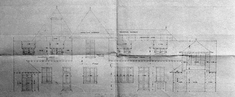 Façade nord projetée, dessin, par Jean Gallacier, 1933 (A. C. Rennes)Immatriculation