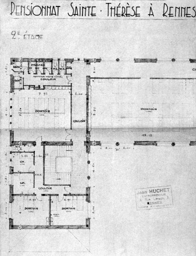Bâtiment des classes. Plan du deuxième étage, 1954 (A. C. Rennes)Immatriculation
