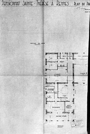 Bâtiment des classes. Plan du premier étage, 1954 (A. C. Rennes)Immatriculation