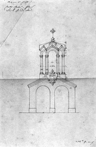 Pension Brécha, Projet de couronnement de la façade nord, Ch. Langlois (A. C. Rennes)Immatriculation