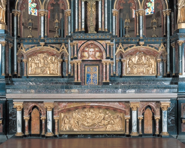 Ensemble du maître-autel : autel, retable, exposition, 2 statues,
